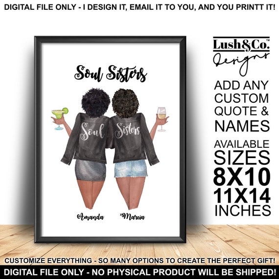 Soul Sisters Print Custom Best Friend Portrait Long Distance Friendship Gift Personalized Best Friends Gift Digital Printable Only