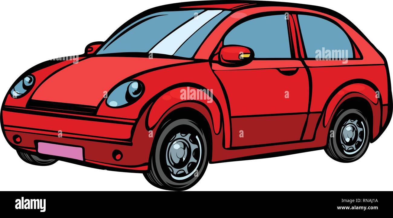 Red Car Road Transport Isolate On White Background Pop Art Retro