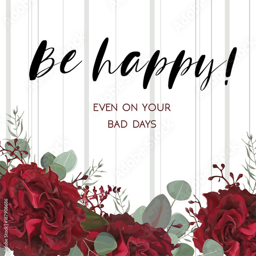 Wedding Invitation Card Floral Red Roses Bouquet And Lettering
