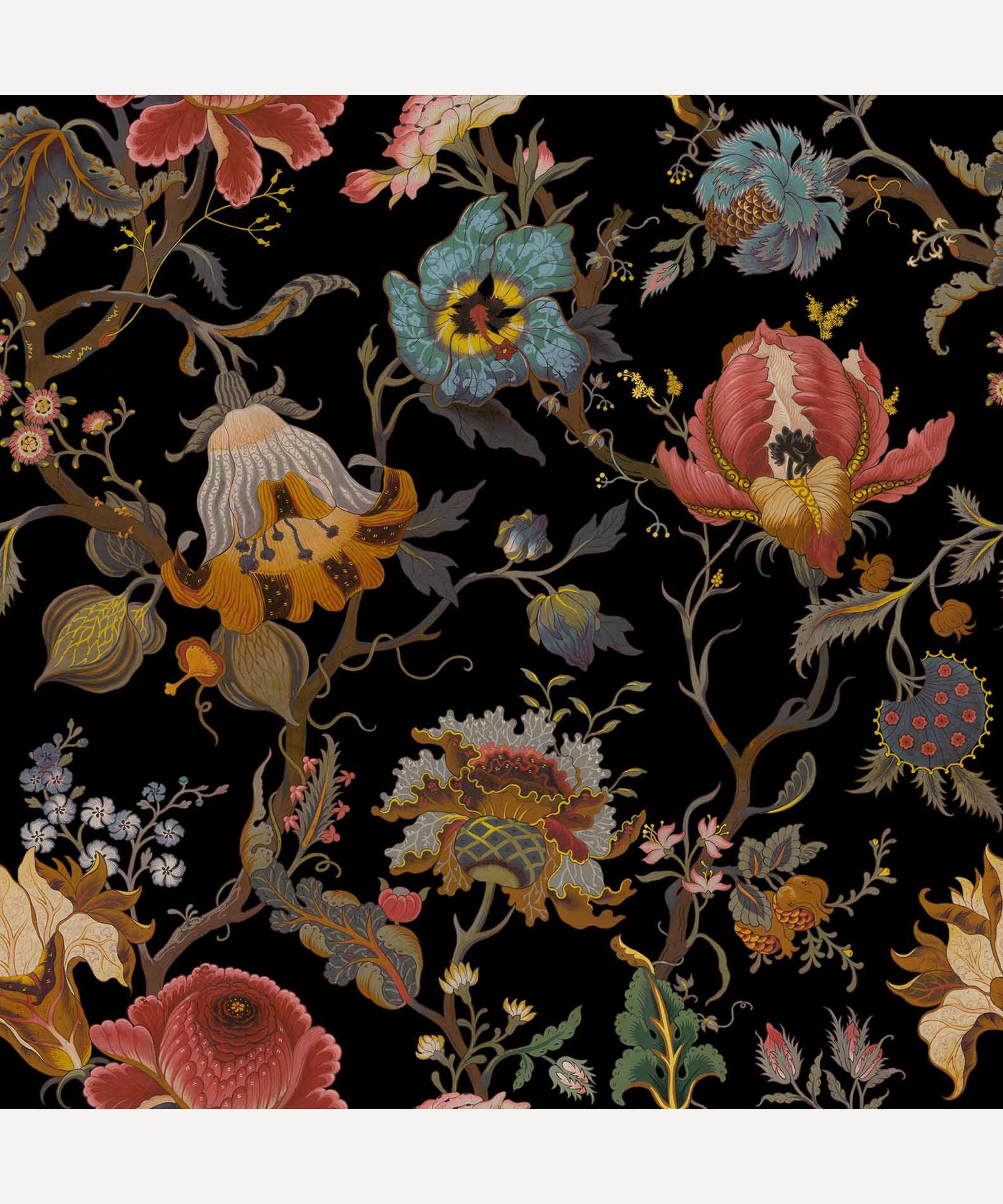 Red Buttercups On Black Upholstery Fabric Wallpaper Llukks
