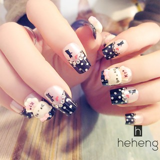 Ready 24pcslot Cat Design Faux Ongles Black Cute Fake Short Size Press On Nail Art Tips