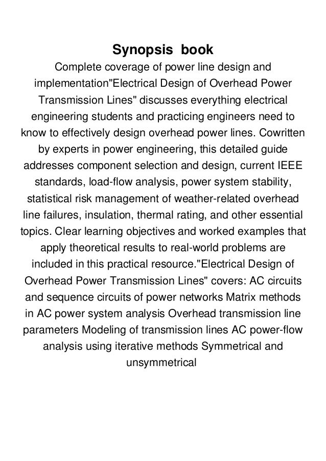 B O O K Electrical Design Of Overhead Power Transmission Lines Read